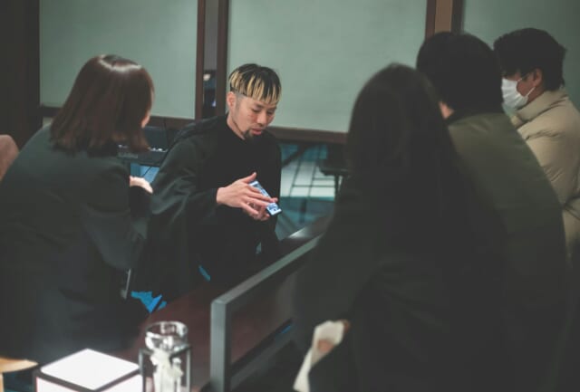 アカガネリゾートの雰囲気に調和する、本物を追究しながらも和のテイストをふんだんに取り⼊れた京フレンチ。世界的賞受賞のグランシェフと名ソムリエが奏でる、⽬にも美しい確かな味わいは、⽼若男⼥問わず⼈気を誇り、ふたりの結婚式を彩ってくれる。