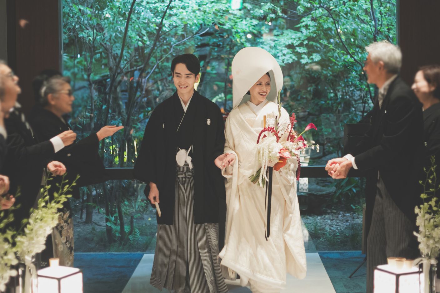明るくポジティブで、直感的な感性とロジカルな視点を併せ持つ新郎様。穏やかな佇まいの中に、自ら考え行動される芯の強さをお持ちの新婦様。現在は神奈川にお住まいのおふたりが、新婦様の故郷である関西、そして情緒あふれる京都を舞台に選ばれたのは、大切な方々へ「京都らしさ」と共に日頃の感謝を届けたいという想いからでした。「ゲストに心から楽しんでもらい、将来ふたりで何度も振り返る宝物にしたい」そんな願いを込め、洗練された空間の中にさりげなく遊び心を散りばめて。おふたりの歩みとゲストへの感謝が重なり、未来を明るく照らす一日が始まりました。