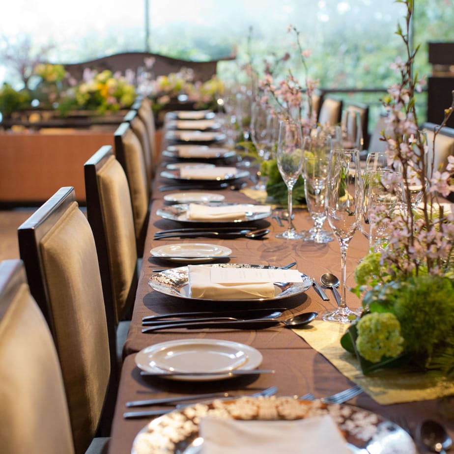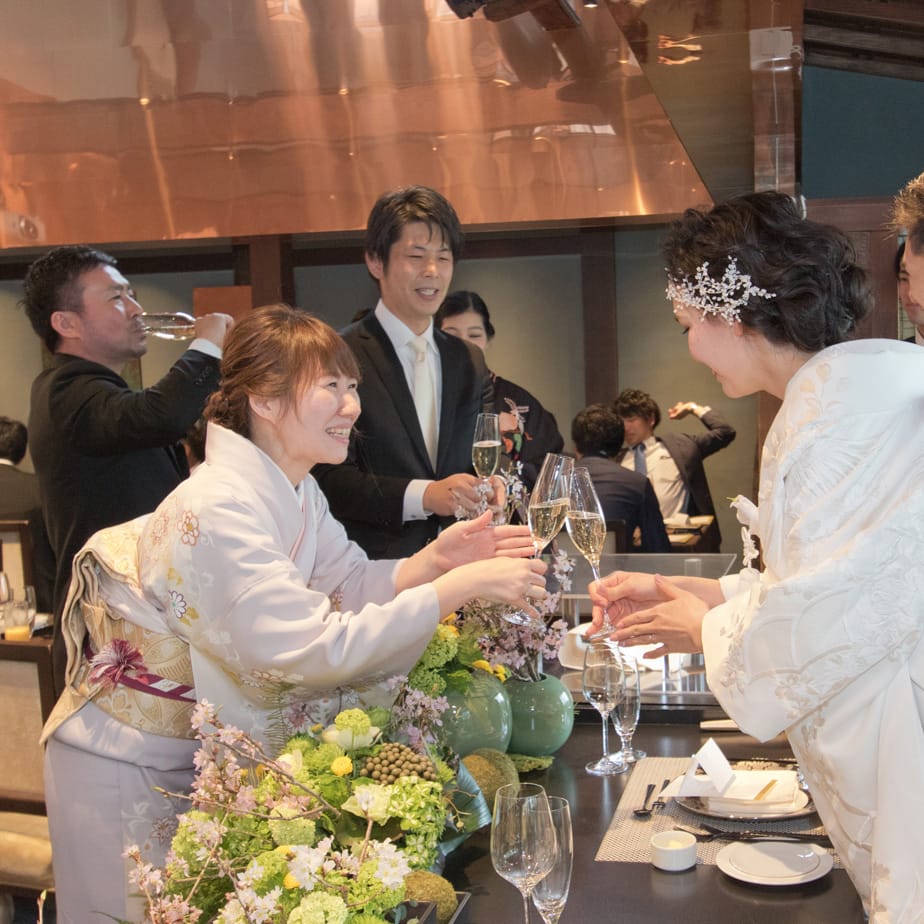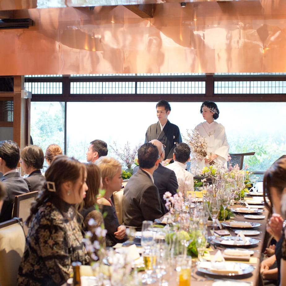 歴史遺産に囲まれる立地、桜が映える緑豊かな和空間、そして食通のおふたりがお料理に太鼓判を押してくださって、祝宴の舞台に「アカガネリゾート京都東山」をお選びくださいました。