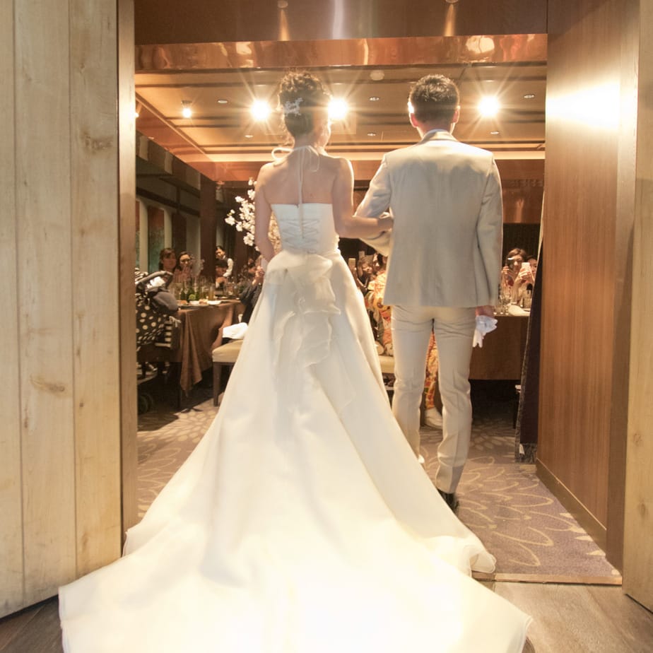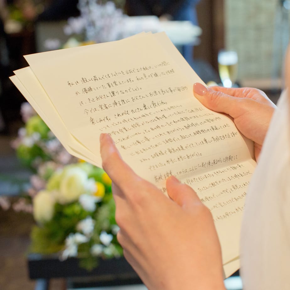 挙式ではおふたりらしい誓いの言葉で永遠を約束し、披露宴ではおにぎりバイトを行うなど随所にたくさんのユーモアが。インタビュー企画などゲスト・家族が自然に表に出る機会を多くつくられ、人を想うあたたかさからうまれた演出で全員の心をひとつに結びつけられました。