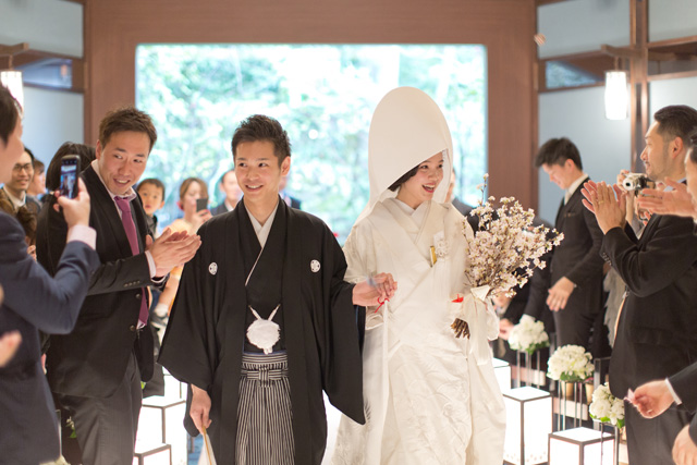 お優しく常に花嫁様や周囲の方々を気づかう新郎様、博識で自由人、時おりのぞく天然な一面が誰からも愛される新婦様。高校の先輩後輩時代を経て京都で再会したおふたりだけに、人との結びつきを第一に、この日集まる全員が楽しめる一日を希望されていました。