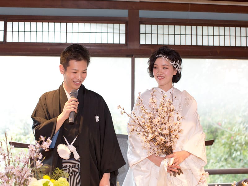 福井出身で遠方ゲストも多いおふたり。招くことがおもてなしとなる“京都らしさ”が漂い、新婦様ご希望の桜が映える会場をお探しでした。