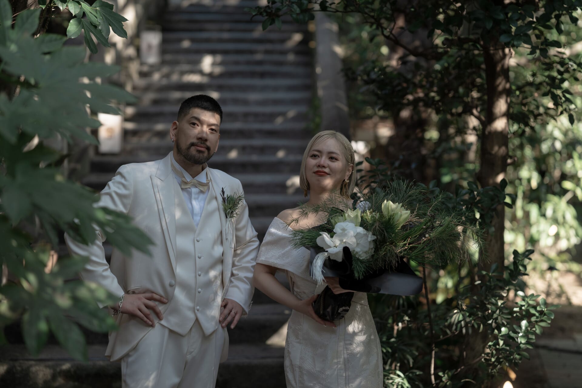 初回のお打ち合わせの段階から、担当プランナーの中で「hanamariproductionがきっと合う」と確信があり、全力でご提案させていただきました。粋で洗練された表現がおふたりの雰囲気に合うこと、そしてその感性を丁寧に汲み取ってくださると感じたからです。