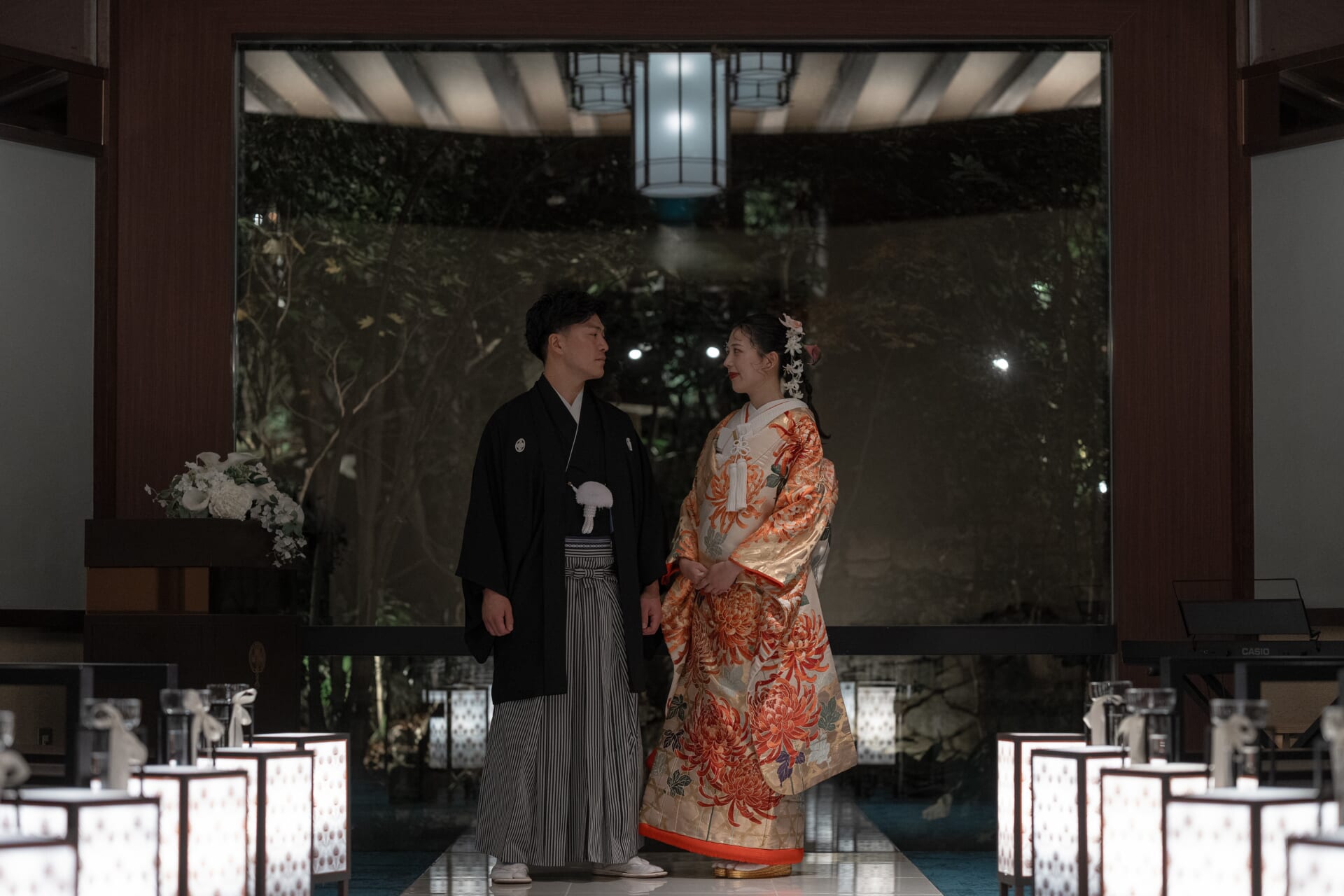 緑の豊かさや開放感、京都らしい佇まいももちろん魅力のひとつでしたが、最終的な決め手となったのは「人」。スタッフの寄り添い方や、「本当の意味でおふたりに何が必要なのか」を一緒に考え、時には立ち止まりながらご提案する姿勢に信頼を寄せてくださり、大切な一日をお任せくださいました。